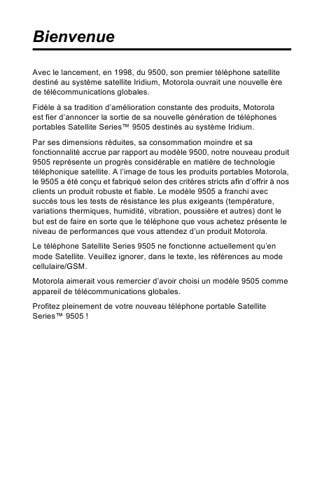 MOTOROLA IRIDIUM 9505 Users Guide French