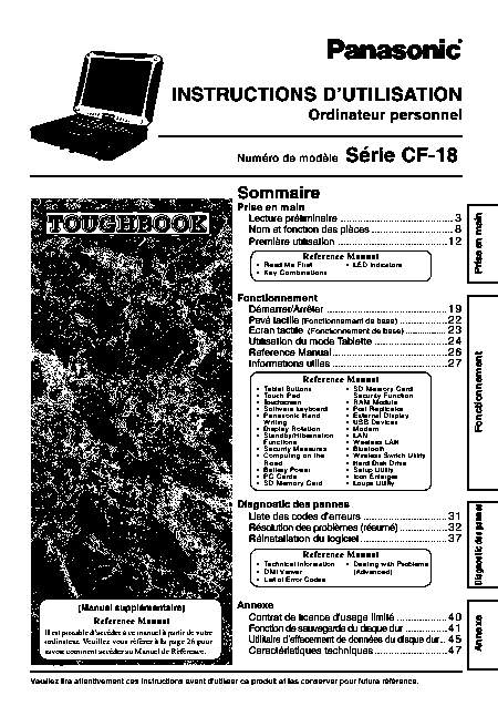 PANASONIC Toughbook 18 (CF-18) Users Guide French