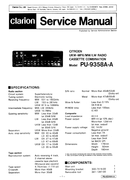 CLARION Citroen PU-9358A-A Service Manual English