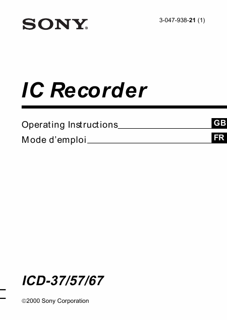 Descargar SONY IC-37 Guía del usuario Francés (36 Páginas) 12.90 EUR