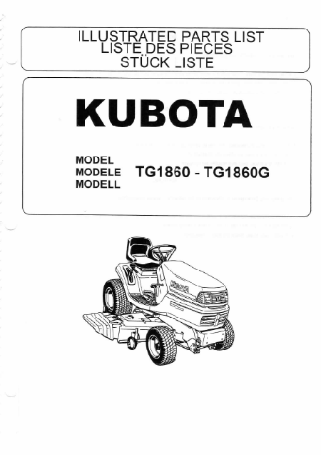 Telecharger KUBOTA TG 1860 (TG1860) Liste pieces detachees Français (167 Pages) 39.90 EUR