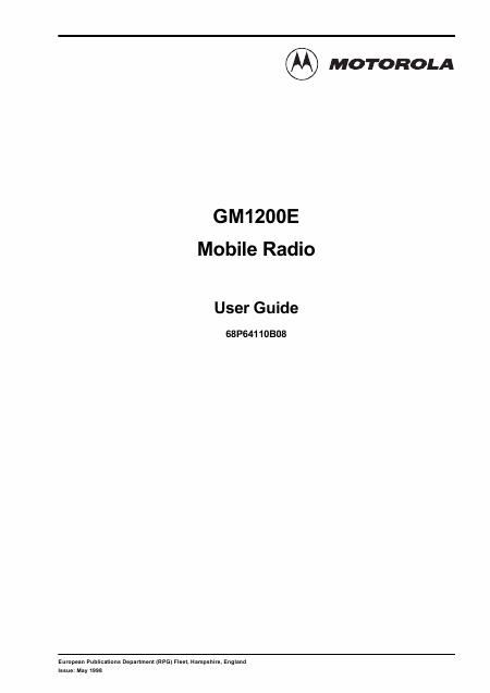 Download MOTOROLA GM1200E Users Guide English (22 Pages) 15.90 EUR