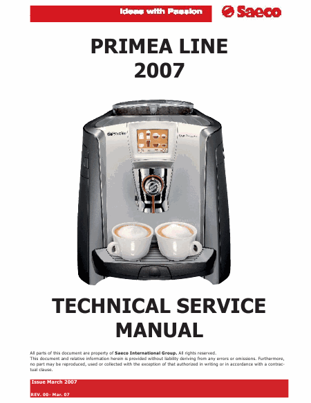 Telecharger SAECO Primea Line 2007 Manuel de service Anglais (79 Pages) 15.90 EUR