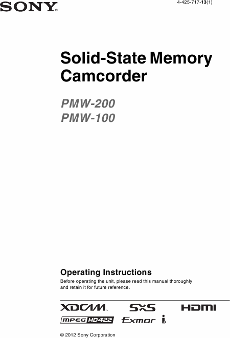 Download SONY PMW-100 Anleitung Englisch (140 Seiten) 15.90 EUR
