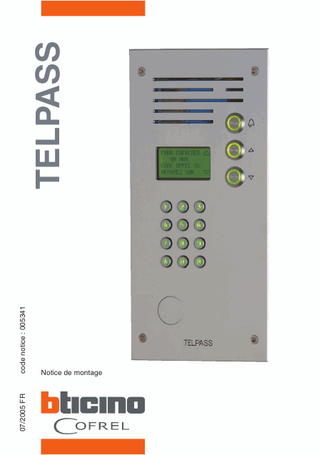 BTICINO COFREL Telpass 2005 Installation Manual French