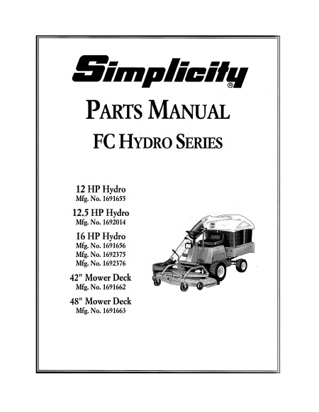 SIMPLICITY FC 12.5 HP Hydro 1692014 Lista de piezas de repuesto Inglés