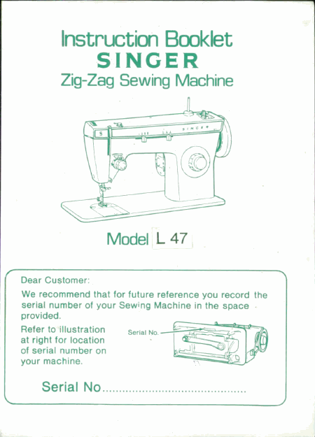 Descargar SINGER L47 Guía del usuario Inglés (15 Páginas) 15.90 EUR