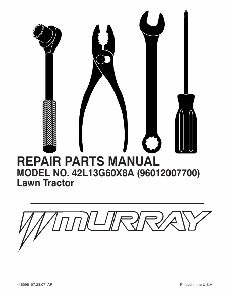Telecharger MURRAY 42L13G60X8A Liste pieces detachees Anglais (20 Pages) 15.90 EUR