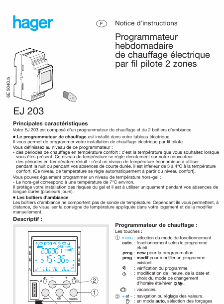Baixar HAGER EJ 203 Instruções Francês (2 Pages) 12.90 EUR