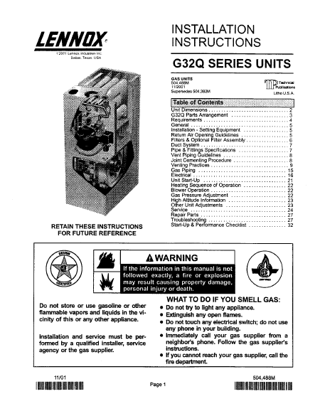 Telecharger LENNOX G32Q Series Manuel installation Anglais (32 Pages) 15.90 EUR