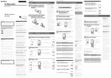 Descargar SONY ICD-B300 Guía del usuario Francés (8 Páginas) 12.90 EUR