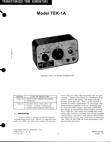 MOTOROLA TEK-1A Schematics English