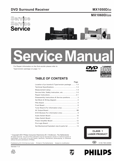 Telecharger PHILIPS MX-1050D Manuel de service Anglais (59 Pages) 15.90 EUR