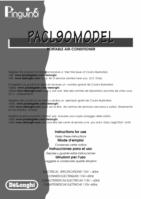 Telecharger DELONGHI PACL90 Mode emploi Anglais (18 Pages) 12.90 EUR