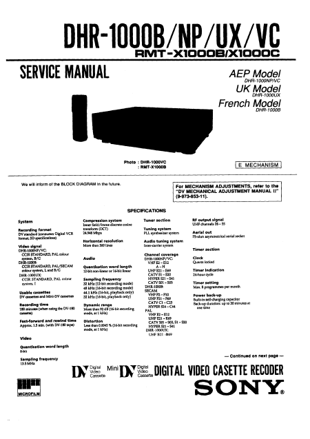 SONY DHR-1000NP Manuel de service Anglais