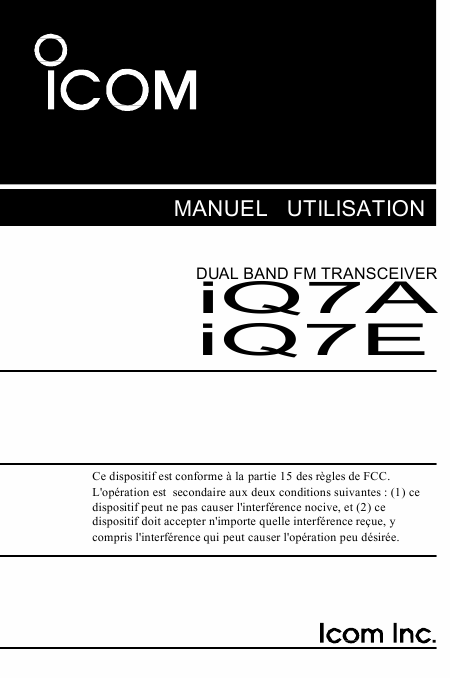 Baixar ICOM iQ-7A Instruções Francês (43 Pages) 15.90 EUR
