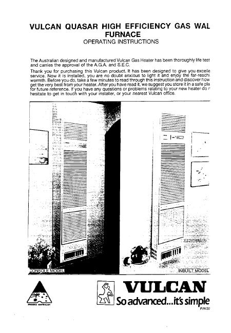 Telecharger VULCAN Quasar Wall Furnace (Manual) Mode emploi Anglais (5 Pages) 12.90 EUR