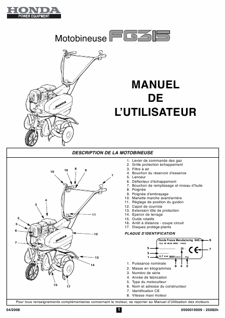 Download HONDA FG 315 Users Guide English (4 Pages) 15.90 EUR