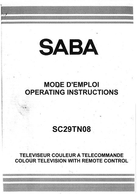 Telecharger SABA SC29TN08 Mode emploi Français (29 Pages) 12.90 EUR