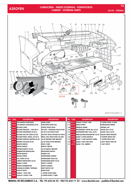 AZKOYEN AZ-04 Vienna Lista de peças Inglês