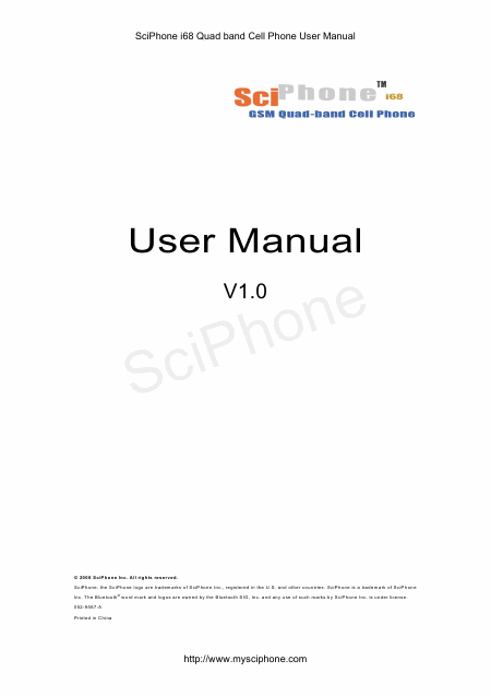 SCIPHONE i68 Users Guide English