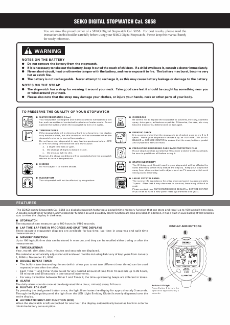 Baixar SEIKO S058 Instruções Inglês (5 Pages) 12.90 EUR