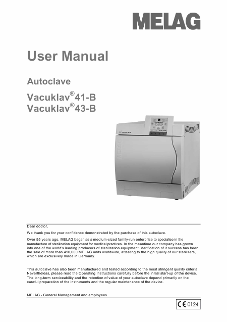 Download MELAG Vacuklav 43-B Anleitung Englisch (59 Seiten) 15.90 EUR
