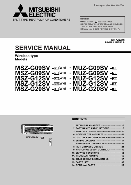 Telecharger MITSUBISHI MSZ-G12SV Manuel de service Anglais (188 Pages) 15.90 EUR