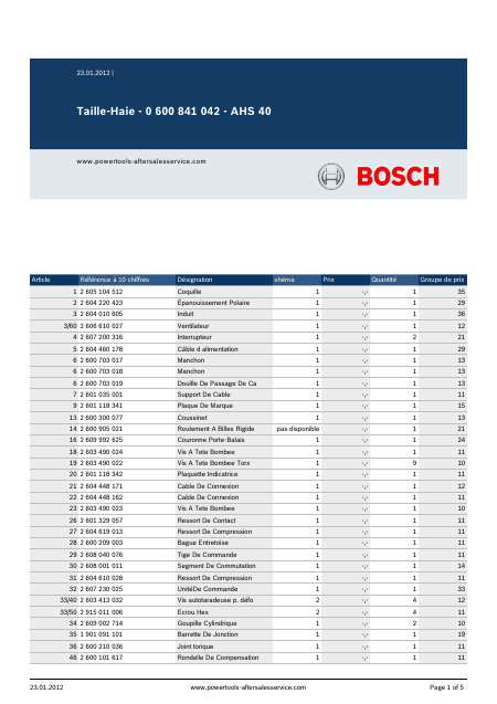 Telecharger BOSCH AHS 40 Liste pieces detachees Français (5 Pages) 15.90 EUR