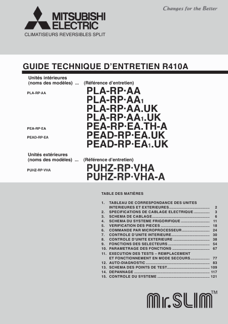 Telecharger MITSUBISHI PLA-RP-AA Manuel de service Français (108 Pages) 39.90 EUR