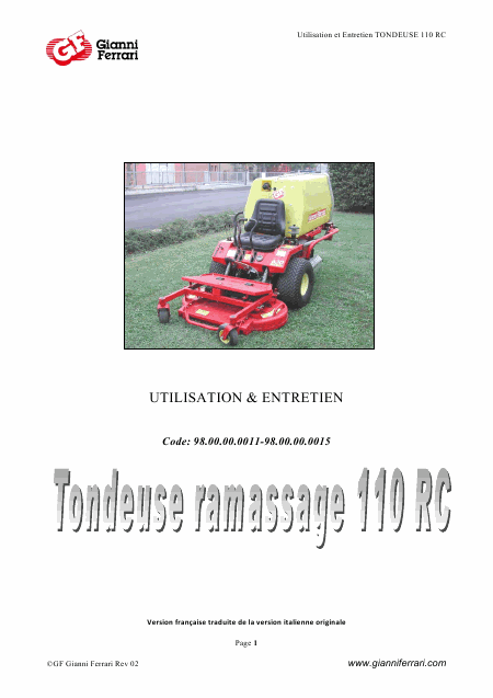 GIANNI FERRARI 110 RC Anleitung Französisch