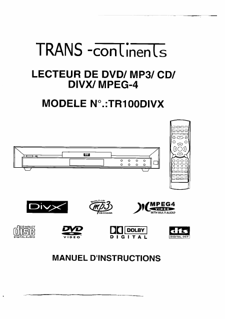 TRANSCONTINENTS TR100DIVX Users Guide French