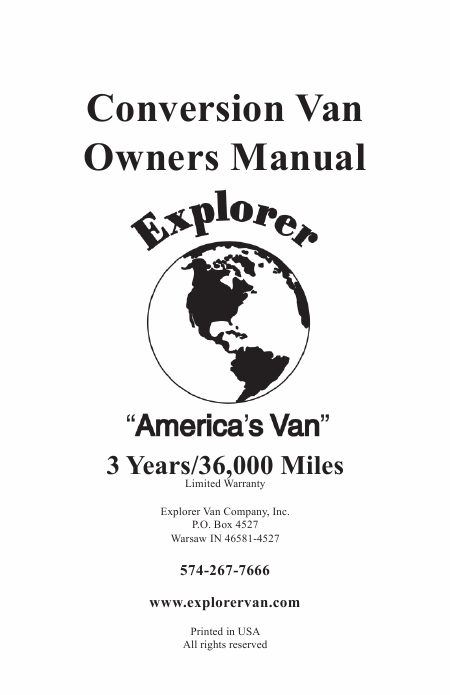 EXPLORER Conversion Van Instruções Inglês