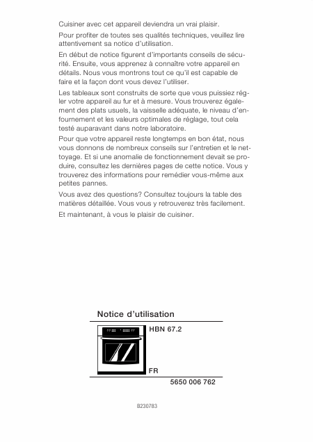 BOSCH HBN6752 Anleitung Französisch