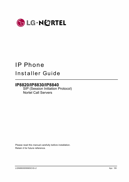 Telecharger LG NORTEL IP Phone 8830 (IP8830) Manuel installation Anglais (140 Pages) 15.90 EUR