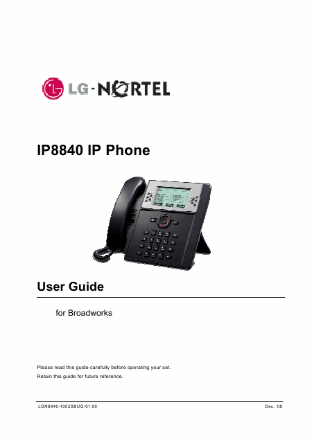 Telecharger LG NORTEL IP Phone 8840 (IP8840) Mode emploi Anglais (36 Pages) 12.90 EUR