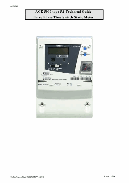Baixar ACTARIS ACE 5000 (Type 5.1 Technical Guide) Instruções Inglês (89 Pages) 39.90 EUR