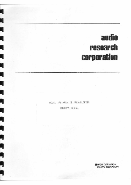 AUDIO RESEARCH SP9 Mark II Anleitung Englisch
