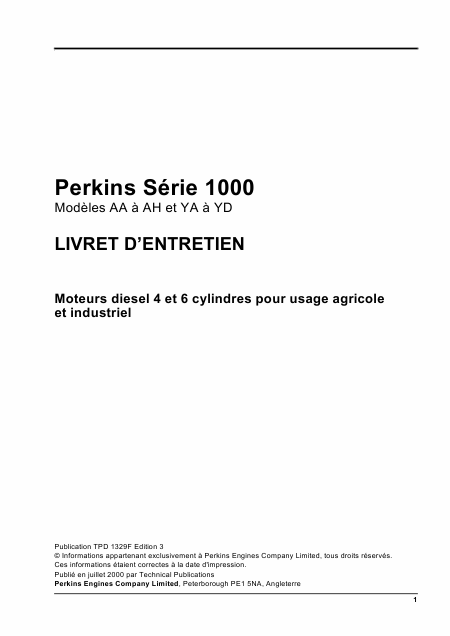 Telecharger PERKINS S�rie 1000 (Mod�les AA� AH et YA � YD) Mode emploi Français (56 Pages) 15.90 EUR