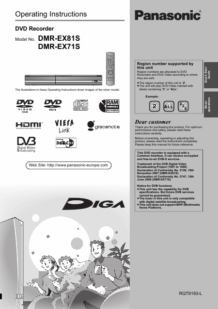 Download PANASONIC DMR-EX71S Users Guide English (88 Pages) 15.90 EUR