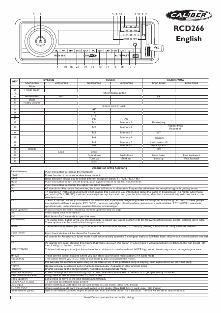 Scaricare CALIBER RCD 266 (RCD266) Guida introduttiva Francese (12 Pagine) 12.90 EUR