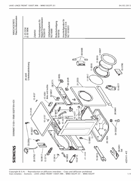 Baixar SIEMENS WM61002FF/01 Siwamat 6100 Lista de peças Francês (8 Pages) 15.90 EUR