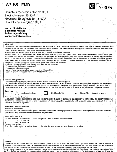 Scaricare ENERDIS ULYS EMD 15(90)A Istruzione Inglese (8 Pagine) 12.90 EUR