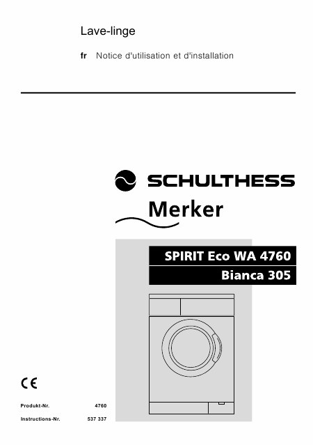 Telecharger SCHULTHESS Spirit Eco WA 4760 Mode emploi Français (40 Pages) 12.90 EUR