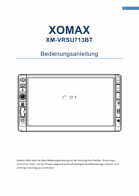 XOMAX XM-VRSU713BT Istruzione Tedesco