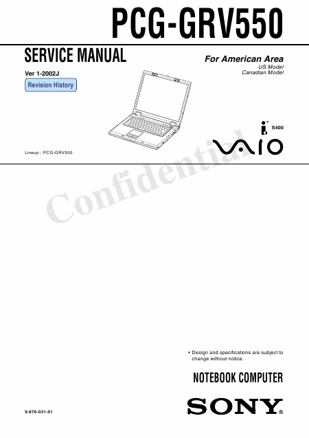 SONY PCG-GRV550 Serviceanleitung Englisch