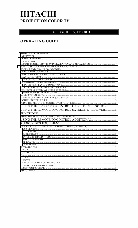 Download HITACHI 53FDX01B Users Guide English (62 Pages) 12.90 EUR