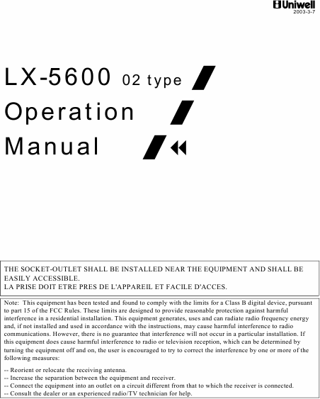 UNIWELL LX-5600 Istruzione Inglese