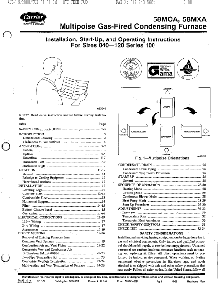 CARRIER 58MXA Installationsanweisungen Englisch