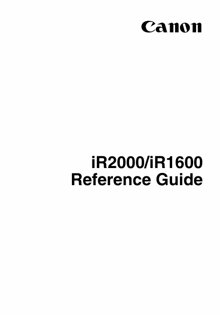 CANON iR2000 (Reference Guide) Mode emploi Anglais